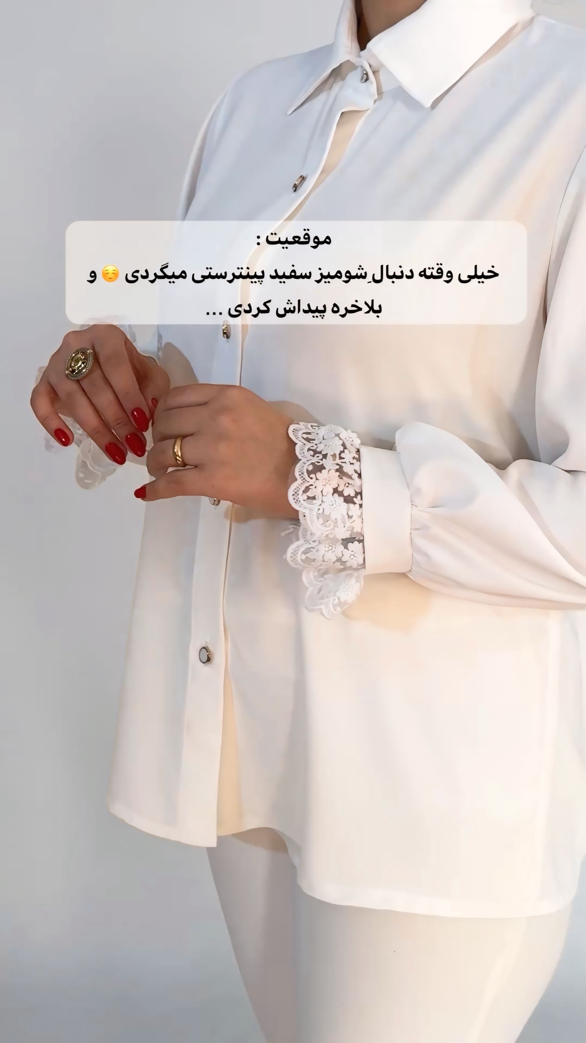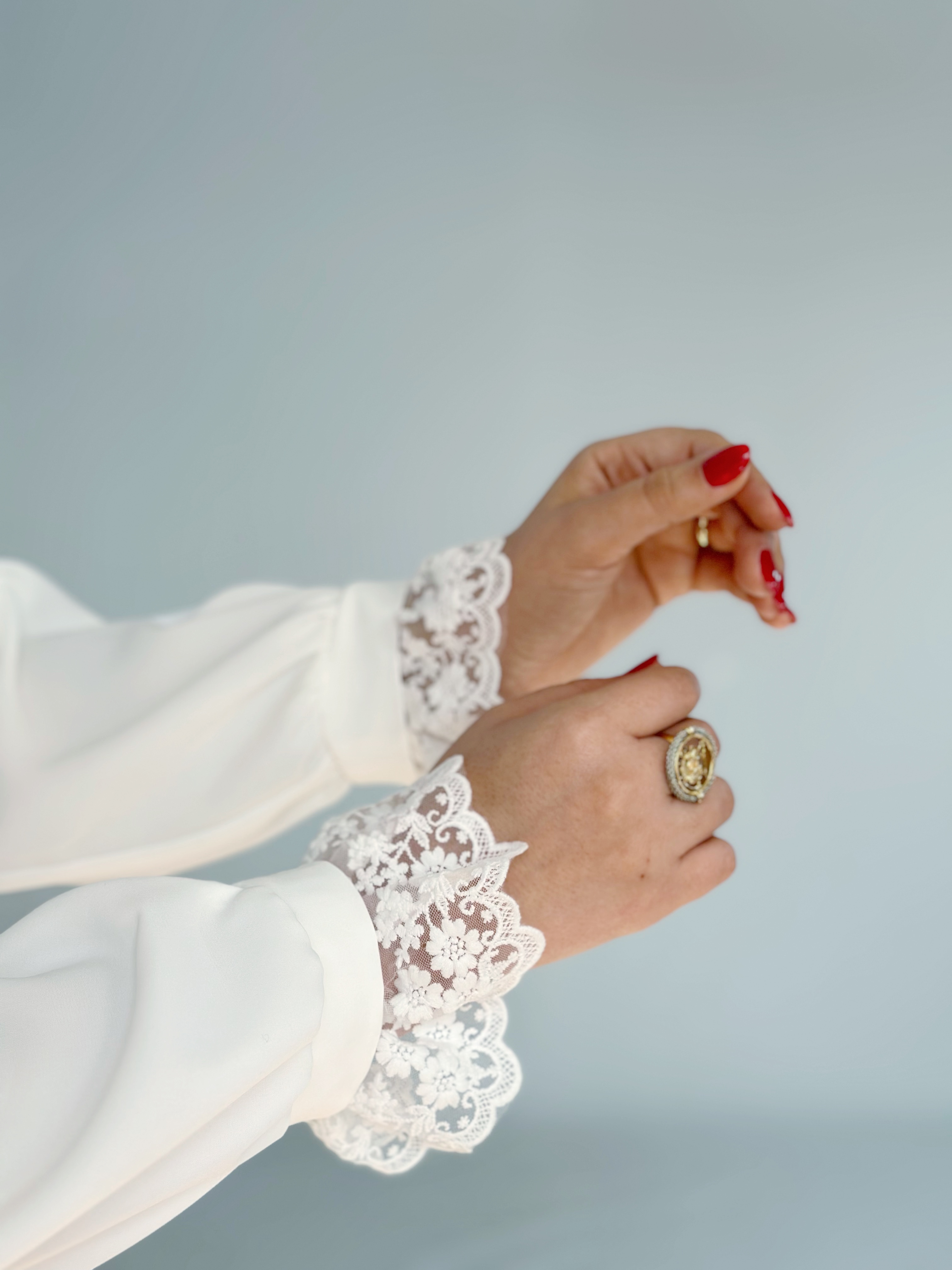 شومیز سفید کرپ الیزه مدل آستین دانتل